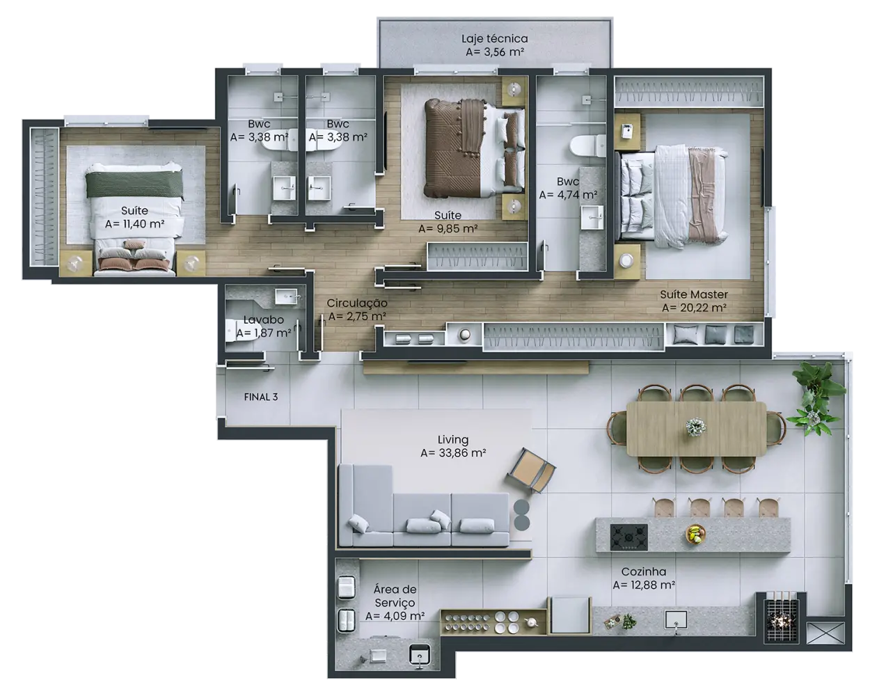 Piso vinílico nas áreas íntimas